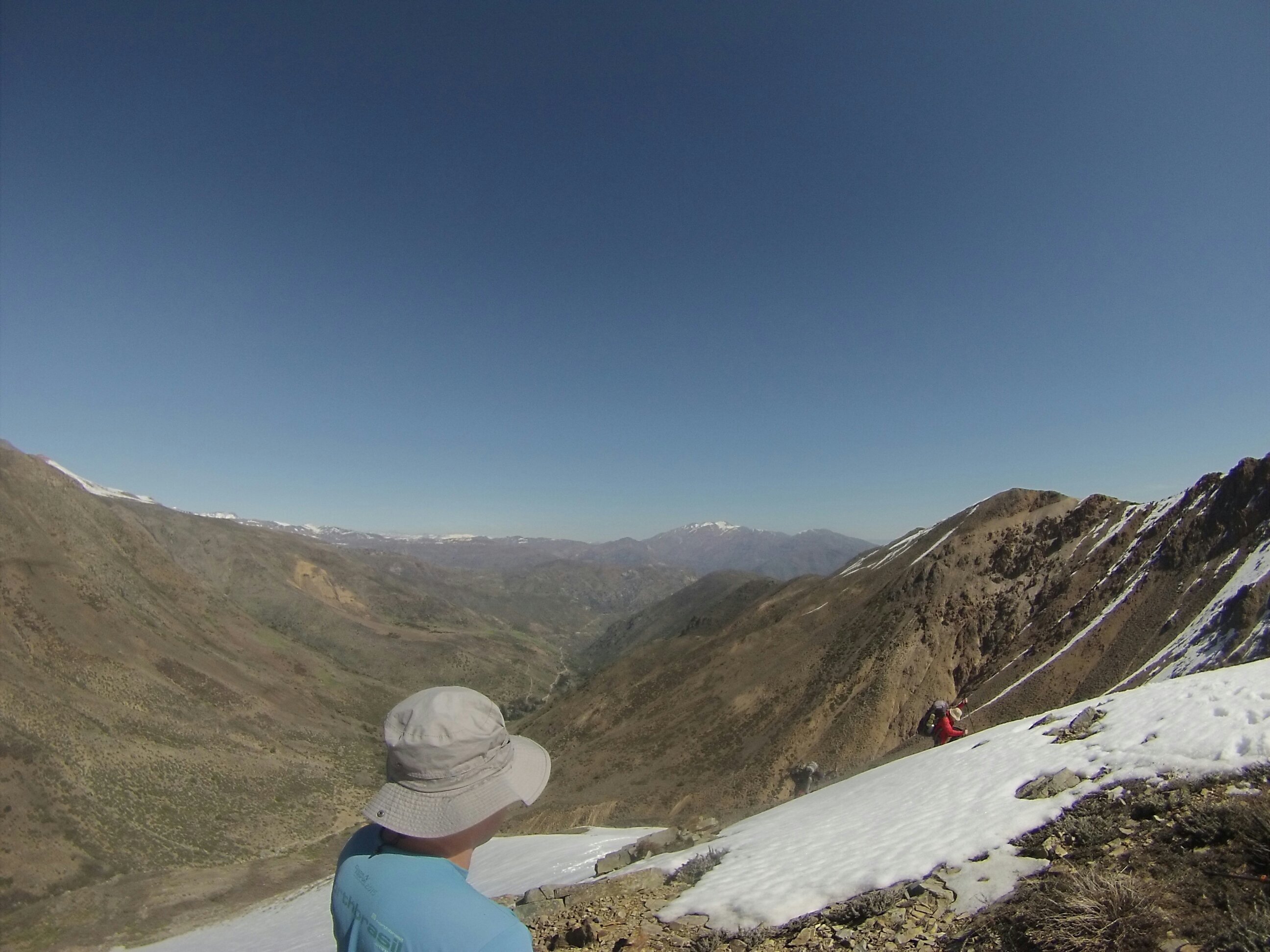 De algum jeito, depois de 3 horas, subimos até um ponto onde não havia neve, tiramos as botas, que estavam começando a molhar. Olhamos para cima, para o relógio, um para ou outro, e desistimos de tentar o cume do cerro Manchón e também do glaciar La Paloma. Impossível vencer a mãe natureza sem equipamentos adequados.