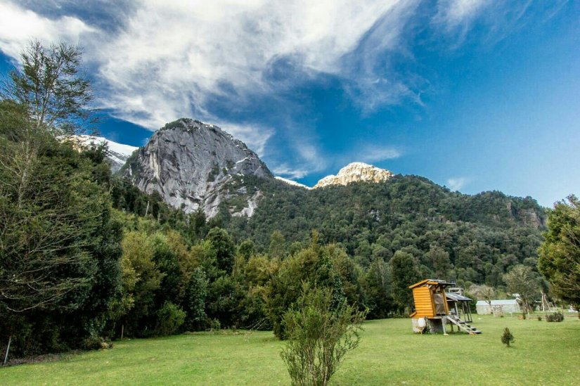 O Campo Aventura fica ao lado do rio Cochamó, no lado oposto à estrada de terra que leva à La Junta. Do camping à ponte são 15 minutos andando.