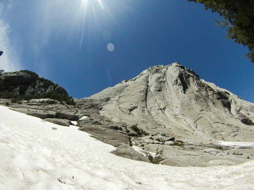Após 3h00 de caminhada, saímos do bosque e um lindo paredão de rocha aparece. É a base do cerro Trinidad.