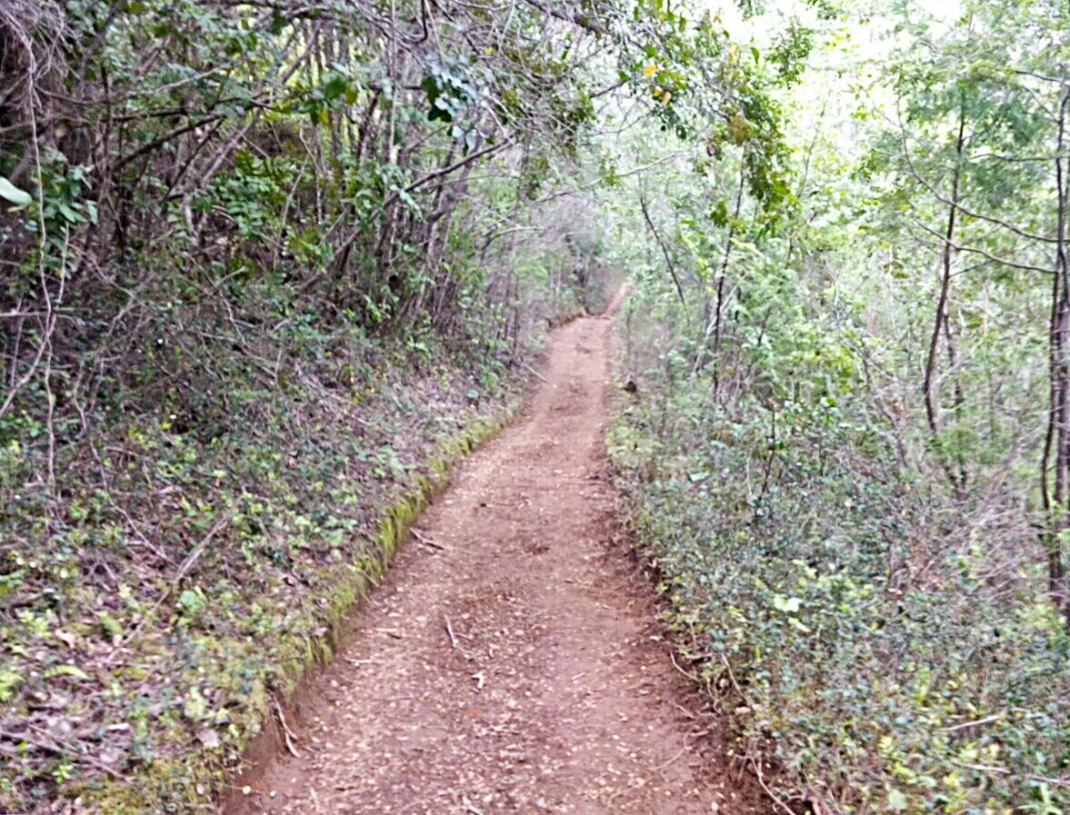 A trilha continua estreita até chegar em uma casa em construção. Provavelmente um futuro hotel. A partir desta construção a trilha fica larga novamente.