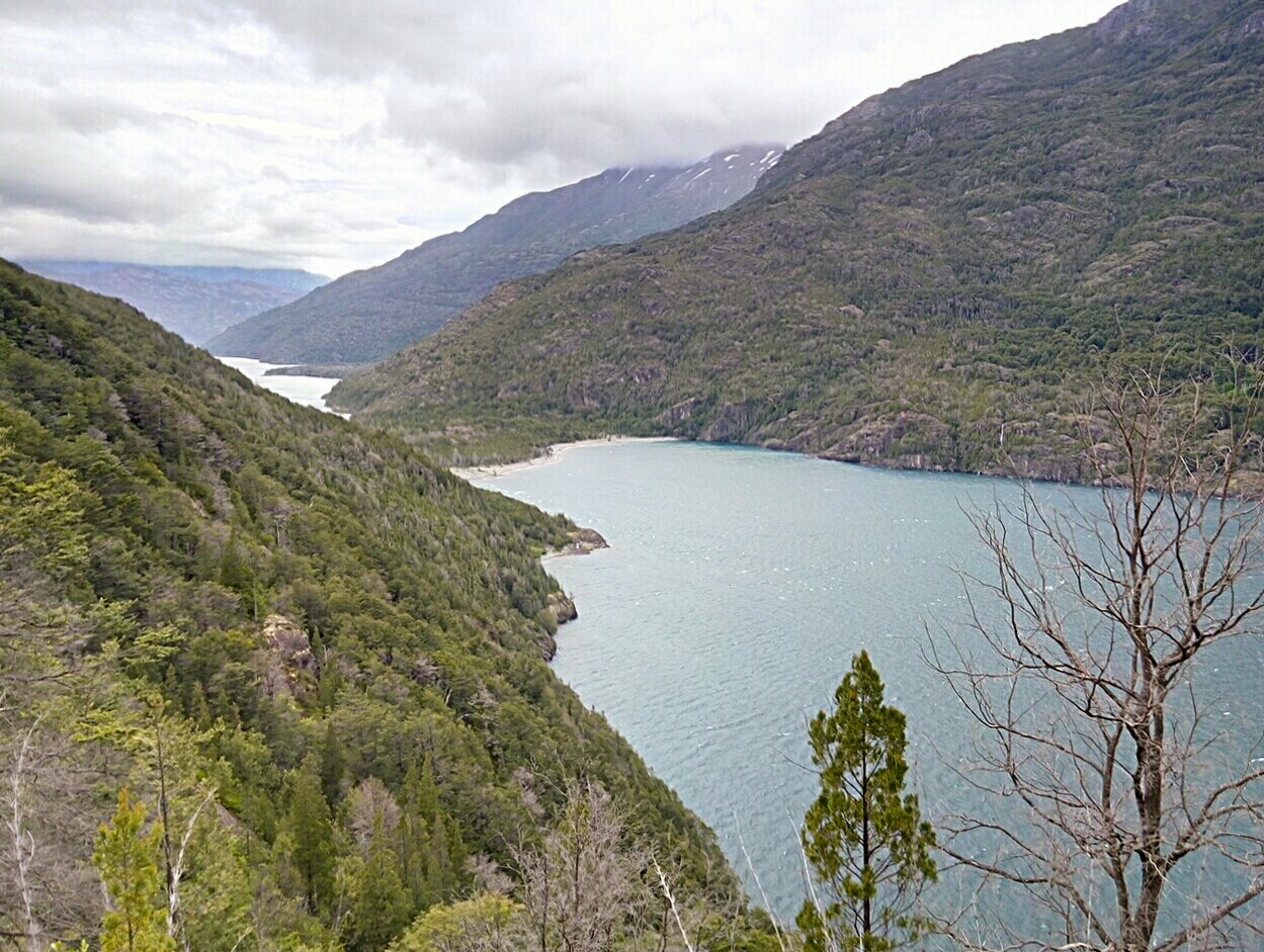 Quase chegando na fronteira com a Argentina é possível avistar a intersecção do lago Inferior do Chile, com o lago Puelo da Argentina.