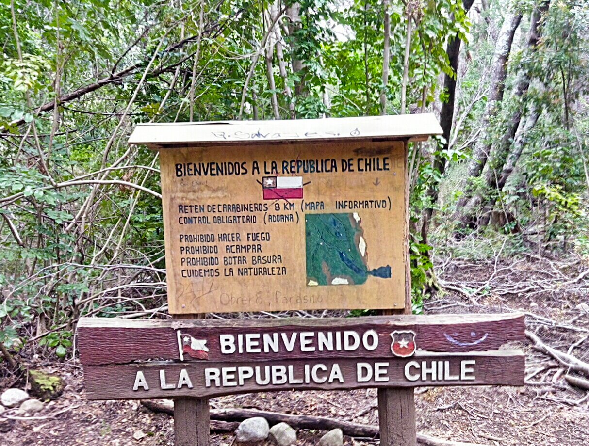 A fronteira entre Chile e Argentina fica no meio da trilha. Somente as placas indicam a fronteira. Mas logo que passamos a divisa percebemos as diferenças na trilha.