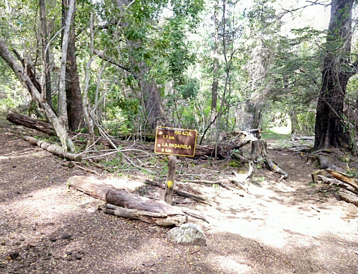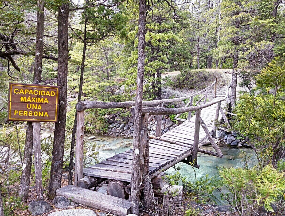Seguimos a trilha com indicação das placas “Pasarela“, que é uma ponte que cruza o rio Puelo.