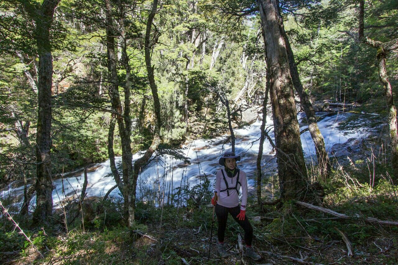 Da Passarela do rio Puelo, seguimos a trilha que vai até o Refúgio Motoco.