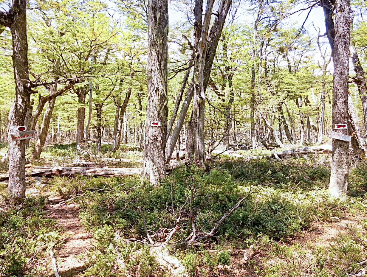 Até a intersecção são aproximadamente 2h30min de trilha. E neste ponto podemos escolher entre ir até o lago Duke ou até a Roca del Tiempo.
