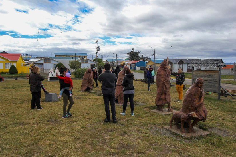 Onde há estátuas representando os antigos habitantes da Tierra del Fuego.