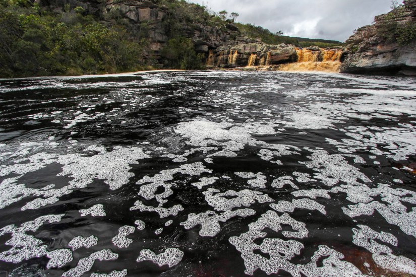 Havia chovido muito nos últimos dias, enchendo o rio e deixando a correnteza bem violenta. Não nos atrevemos a entrar na cachoeira e nos contentamos em apreciá-la de longe.