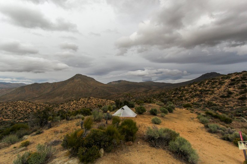 Nos distanciamos um pouco da civilização e logo acampamos. Como começamos a caminhada tarde, andamos pouco neste dia. Neste trecho não havia nenhum ponto de água.