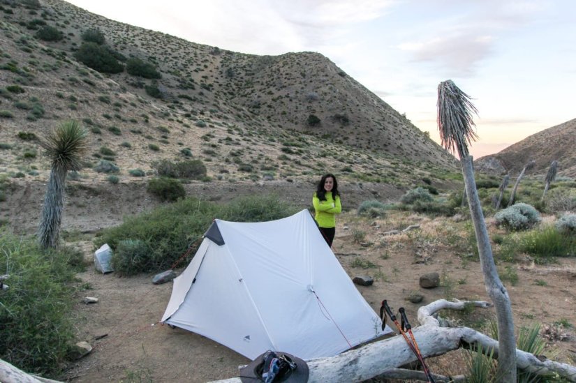 Depois da bela paisagem, começamos uma descida até um vale, onde acampamos, ao lado do que algum momento do ano deve correr um riacho. Mas… naquele dia estava completamente seco. Ainda bem que nos abastecemos de água no trail magic.