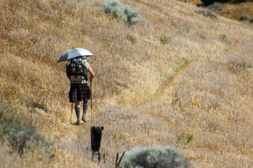 - Muitos hikers usam uma sombrinha para ajudar na proteção solar.