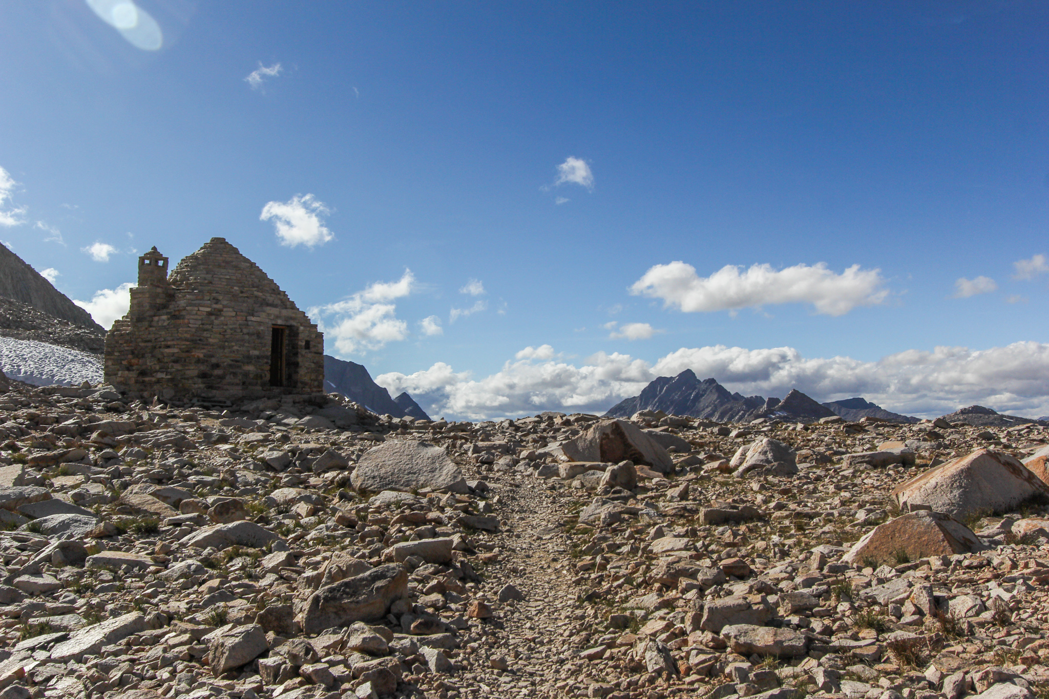 A subida termina no Muir Pass, onde há um refúgio de pedra em memória do lendário John Muir.