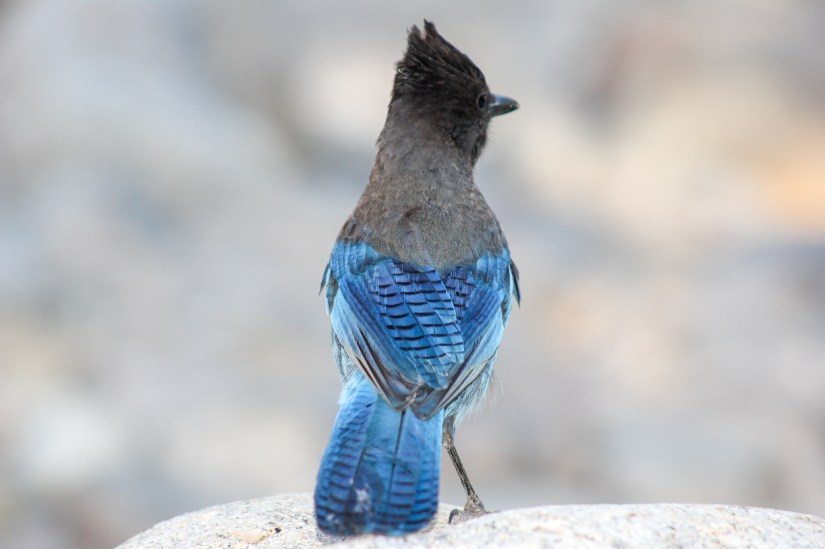 O melhor do dia foi lancharmos ao lado do pássaro azul California Scrub-Jay, que ficou nos rodeando à procura de nossas migalhas.