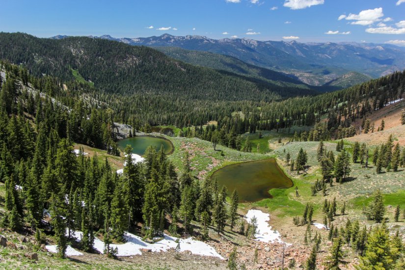 Continuamos no Trinity Alps Wilderness, com vários pontos de água no caminho e paisagens com lagoas.