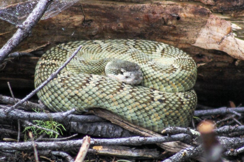 Outro animal que encontramos neste dia foi uma cobra cascavel, que quase foi pisada por mim. Incrível como passamos ao lado destes répteis sem perceber.
