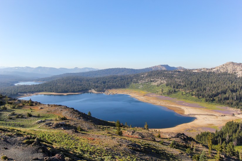Terminamos a subida de ontem, com uma bela vista para os Lost Lakes, onde acampamos na noite anterior.