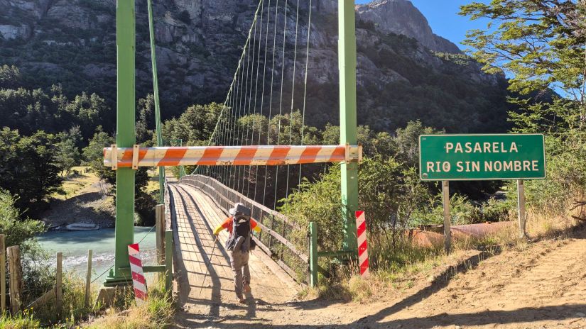 Conseguimos uma carona logo cedo na Villa Cerro Castillo. A carona nos deixou no primeiro ponto de ônibus ao sul depois da vila, logo após a Laguna Verde e a ponte sobre o rio Manso. Depois fomos caminhando pelo caminho veicular X-727 onde nenhum carro passava.