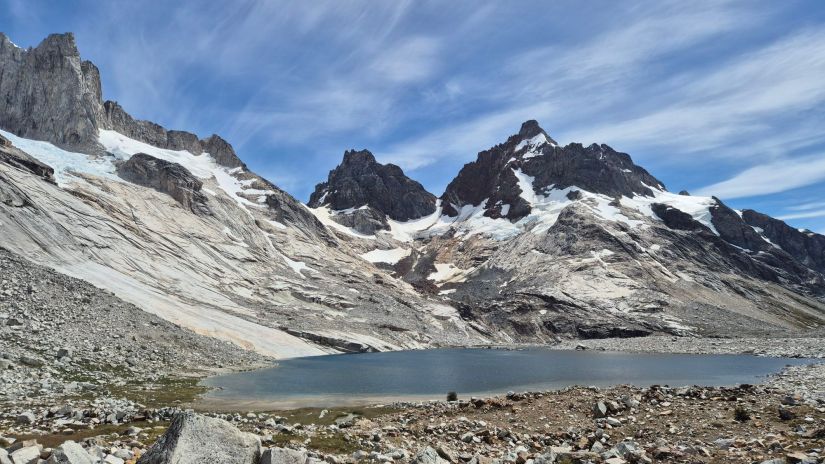 Chegamos em um terreno pedregoso, onde fomos subindo até chegarmos na primeira laguna de Avellano.