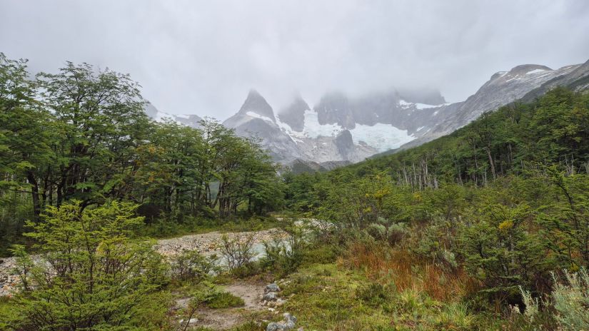 Tivemos dias de Sol, dias nublados e um dia inteiro de chuva. Não estava muito frio e por sorte os ventos não sopravam muito forte. Encontramos poucas pessoas na trilha, cerca de 8 trilheiros somente.